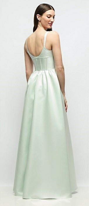 Scoop Neck Inset Corset Satin Maxi Dress with Pockets in mint green