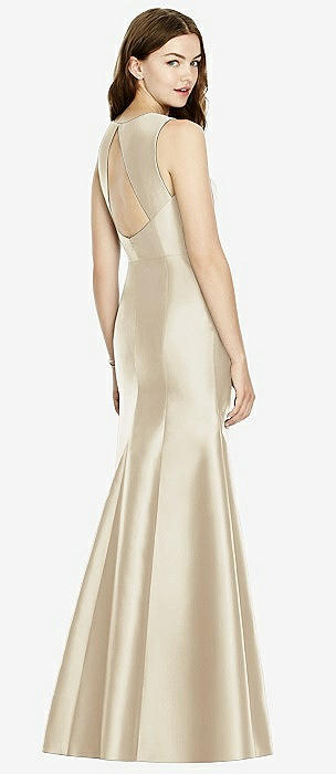 Jewel Neck Bowed Open-Back Trumpet Dress with Front Slit in blush