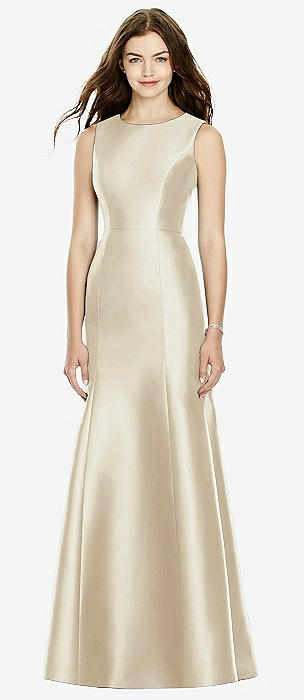 Strapless Satin Column Dress with Removeable Watteau Train in champagne