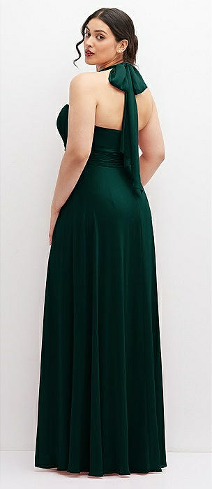 Strapless Draped Bodice Column Dress with Oversized Bow in evergreen