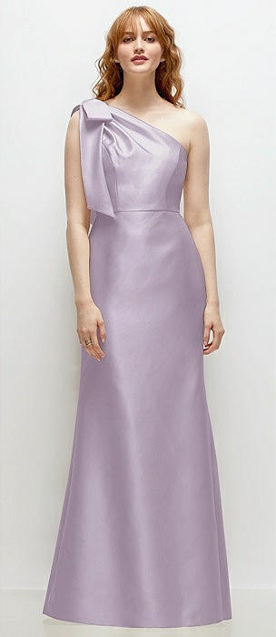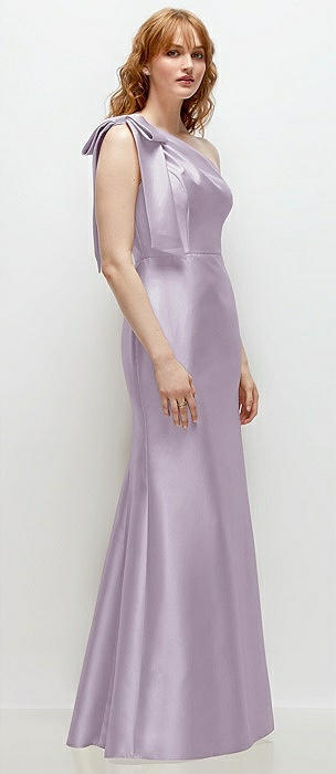 Bow One-Shoulder Satin Trumpet Gown in lilac haze