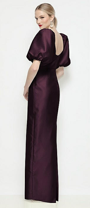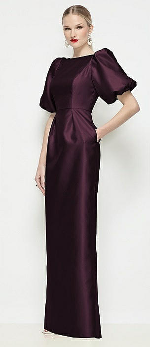 Bateau Neck Satin Column Maxi Dress with Puff Sleeves in deep plum