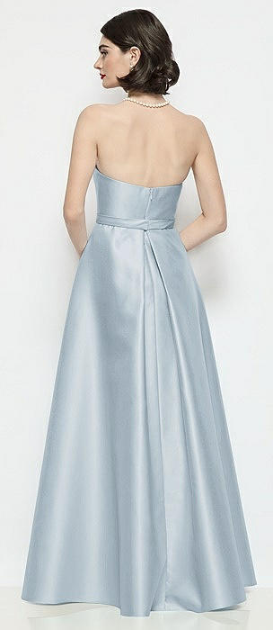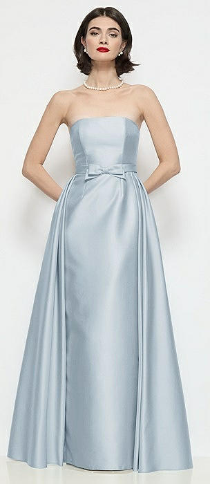Strapless Bow-Waist Satin Column Dress with Overskirt in mist