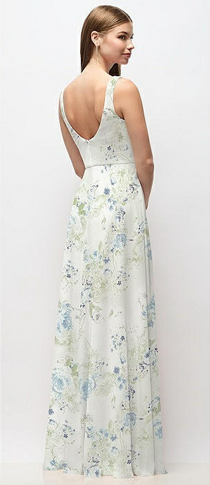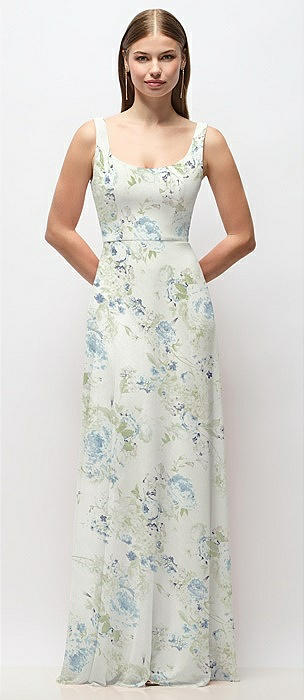 Scoop Neck Tank Strap Floral Chiffon Maxi Dress in bleu garden