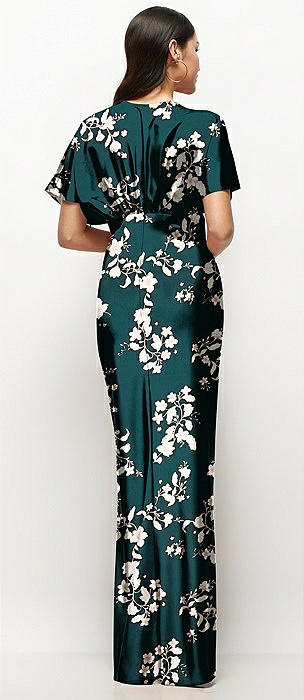 Plunge Neck Kimono Sleeve Floral Satin Bias Maxi Dress in vintage primrose evergreen