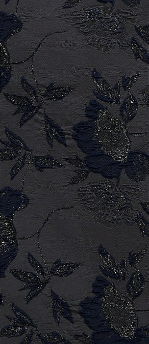 Noir Midnight Navy Strapless Floral Metallic Jacquard Column Dress with Back Slit in noir midnight navy
