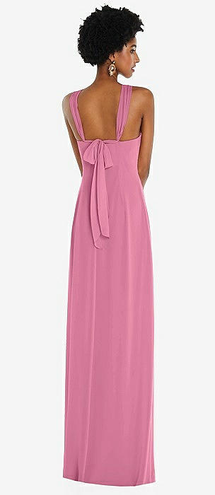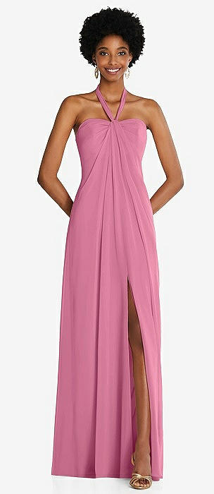 Draped Chiffon Grecian Column Gown with Convertible Straps in orchid pink