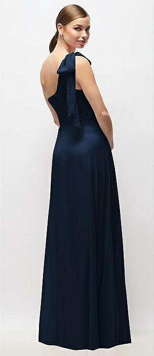 Draped One-Shoulder Maxi Dress with Scarf Bow in midnight navy