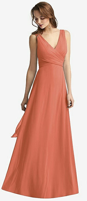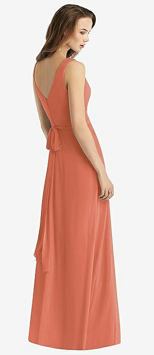 Sleeveless V-Neck Chiffon Wrap Dress in terracotta copper