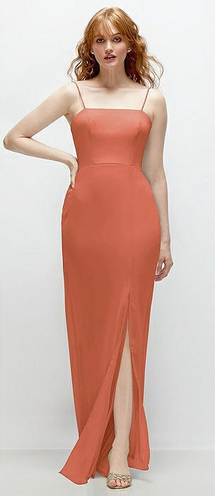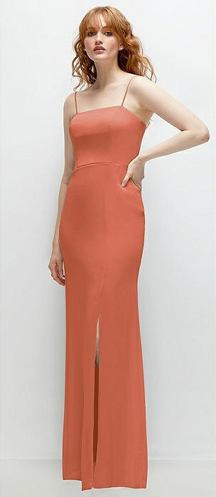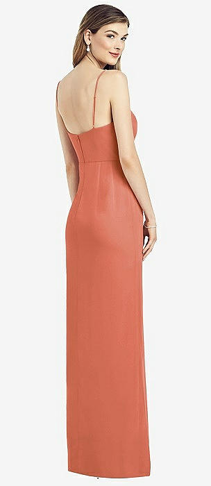 Spaghetti Strap Draped Skirt Gown with Front Slit in terracotta copper