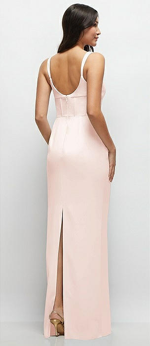 Corset-Style Crepe Column Maxi Dress with Adjustable Straps in blush