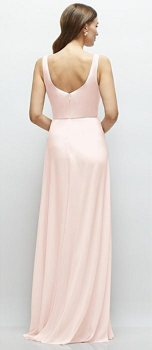 Square Neck Chiffon Maxi Dress with Circle Skirt in blush