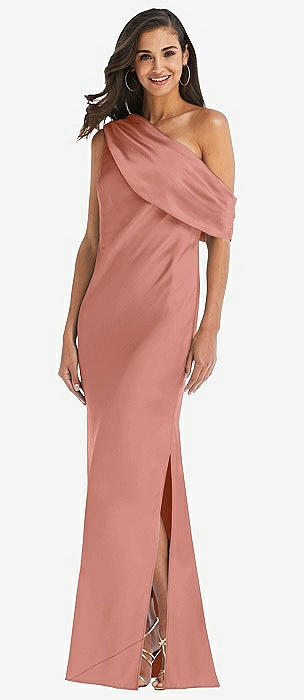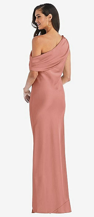 Shirred One-Shoulder Satin Trumpet Dress - Maddie in desert rose