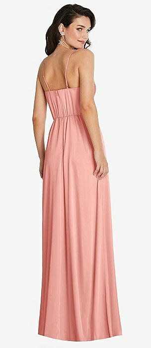 Wrap Bodice Chiffon Maxi Dress with Adjustable Spaghetti Straps in blush