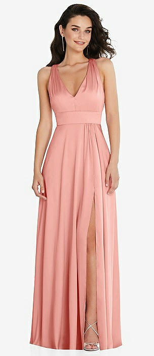 Shirred Shoulder Criss Cross Back Maxi Dress with Front Slit in rose