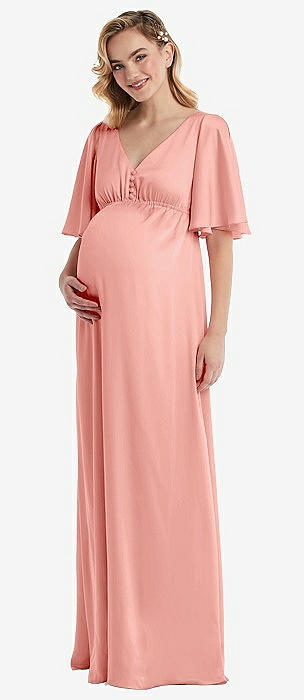 Flutter Bell Sleeve Empire Maternity Dress in rose