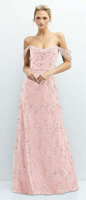 Off-the-Shoulder A-line 3D Floral Embroidered Dress in rose