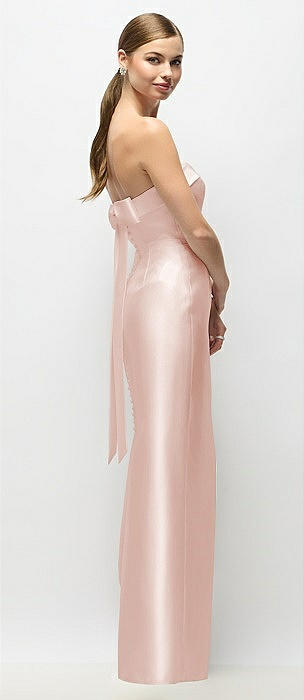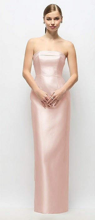 Strapless Cuff Satin Maxi Dress with Column Skirt & Back Bow in blush