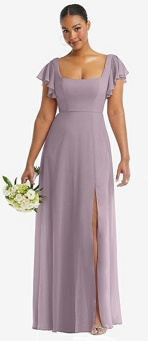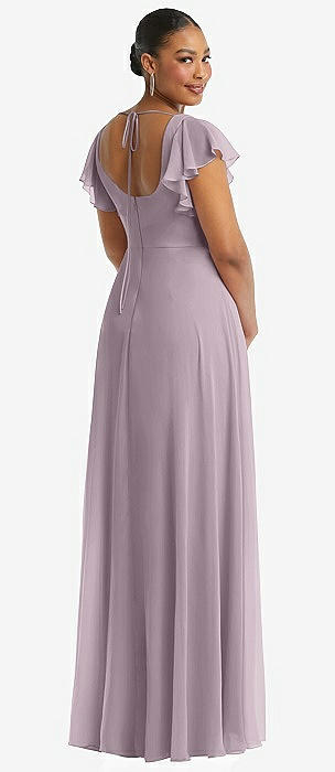 Flutter Sleeve Scoop Open-Back Chiffon Maxi Dress in lilac dusk