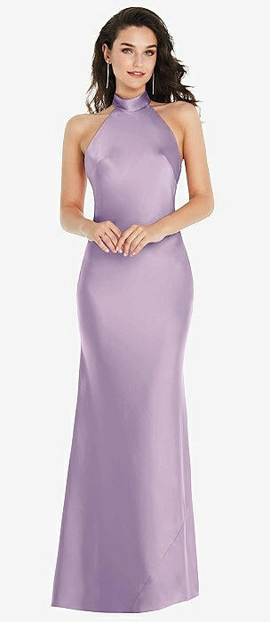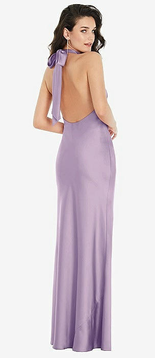 Draped Twist Halter Tie-Back Trumpet Gown in pale purple