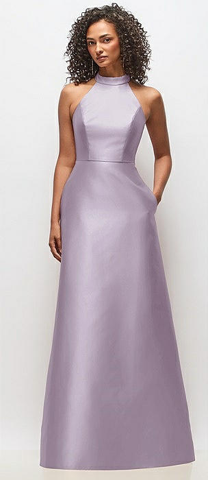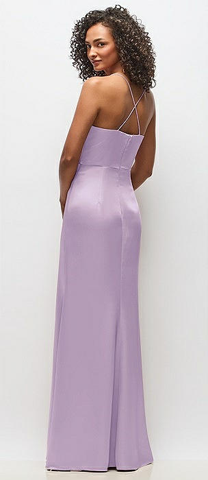 V-Neck Halter Satin Trumpet Gown in lilac haze