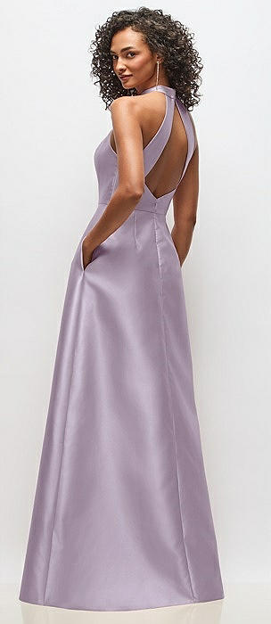High-Neck Cutout Satin Dress with Pockets in lilac haze