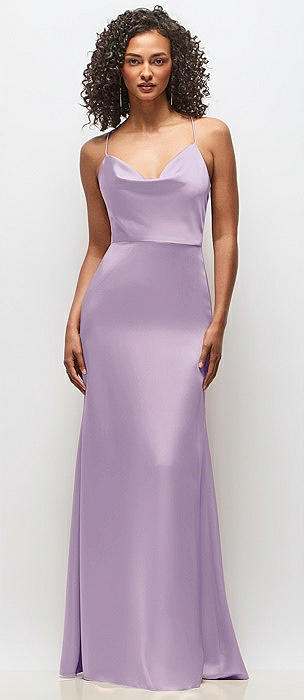 Cowl-Neck Criss Cross Back Slip Dress in pale purple