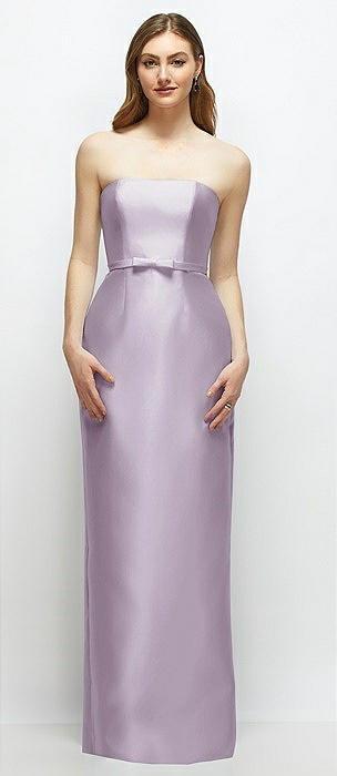 Strapless Satin Column Dress with Bow-Trimmed Skinny Belt in lilac haze