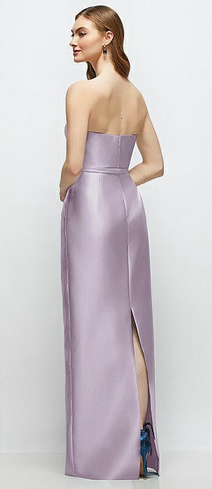 Strapless Cuff Satin Maxi Dress with Column Skirt & Back Bow in lilac haze