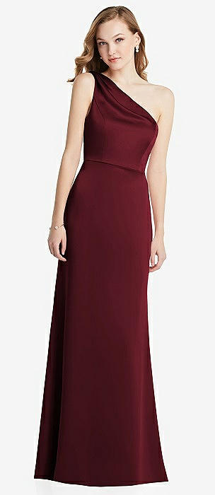 Shirred One-Shoulder Satin Trumpet Dress - Maddie in cabernet