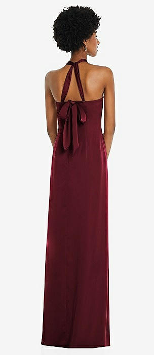 Criss Cross Halter Open-Back Stretch Satin Mermaid Dress in cabernet