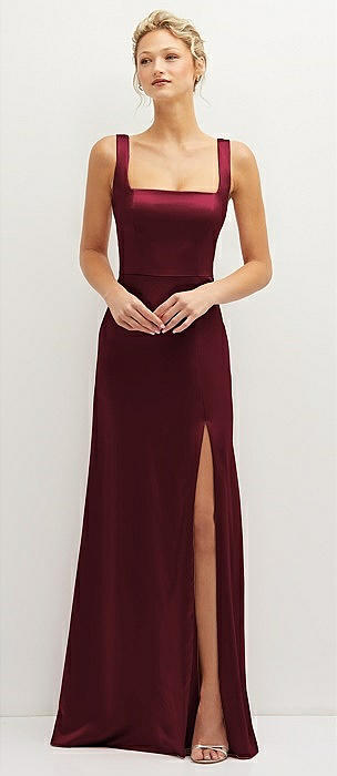 Square-Neck Satin A-line Maxi Dress with Front Slit in cabernet