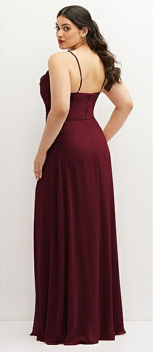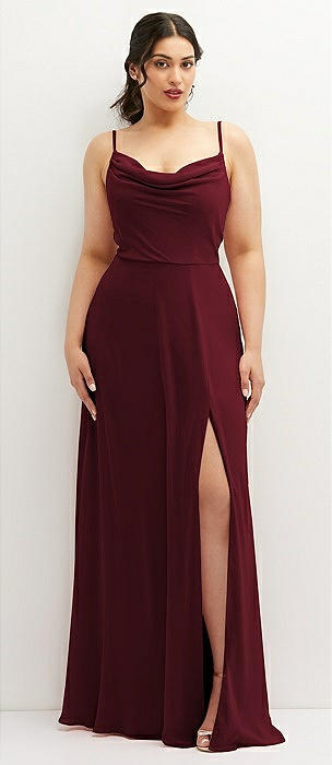 Soft Cowl-Neck A-Line Maxi Dress with Adjustable Straps in cabernet