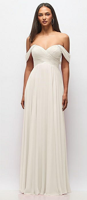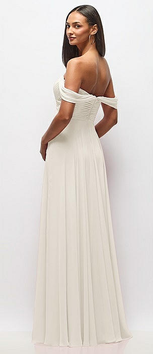 Off-the-Shoulder Draped Chiffon Maxi Dress in ivory
