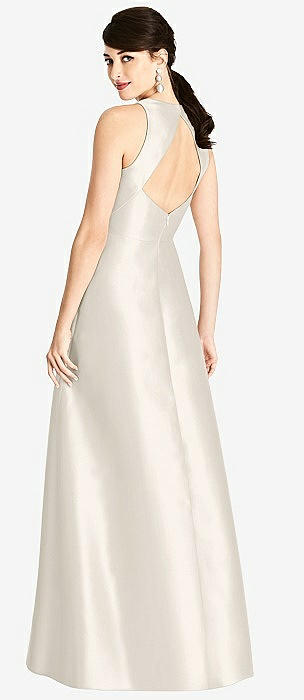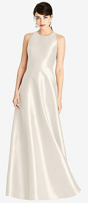 Sleeveless Open-Back Satin A-Line Dress in ivory