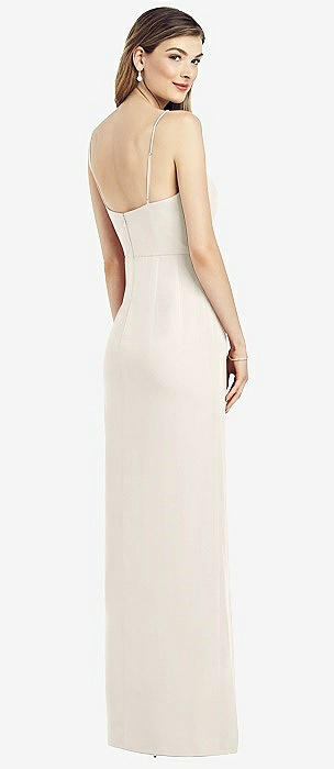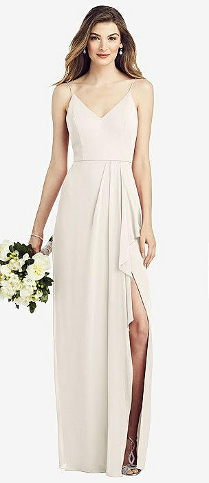 Spaghetti Strap Draped Skirt Gown with Front Slit in ivory