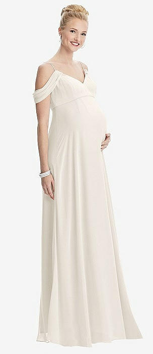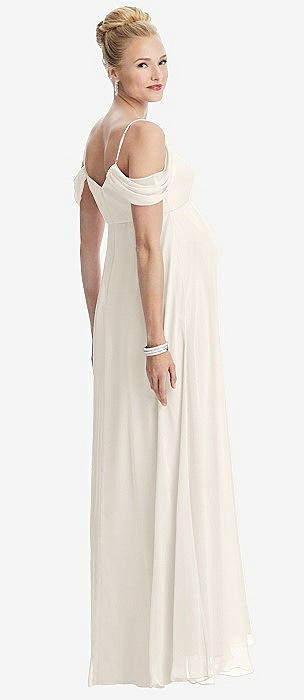 Draped Cold-Shoulder Chiffon Maternity Dress in ivory