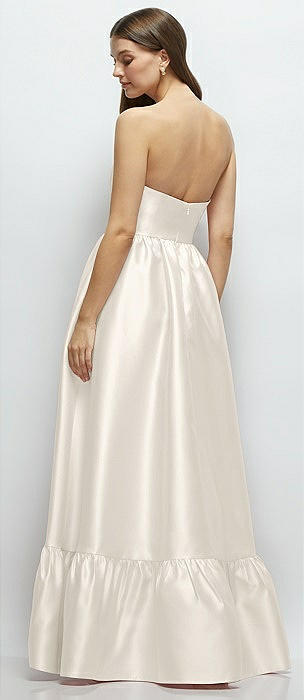 Strapless A-line Satin Gown with Modern Bow Detail in ivory