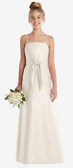 Spaghetti Strap Satin Junior Bridesmaid Dress with Mini Sash in ivory