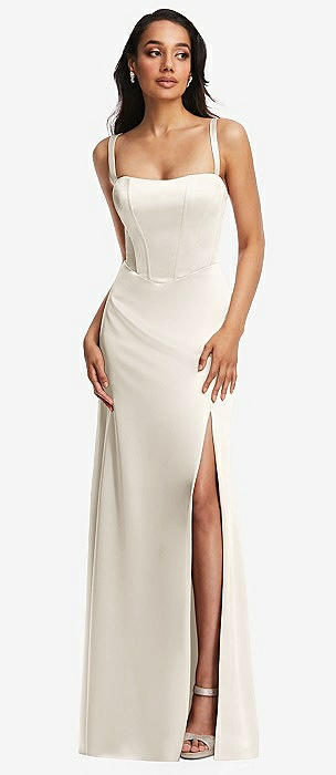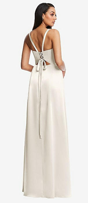 Lace Up Tie-Back Corset Maxi Dress with Front Slit in ivory