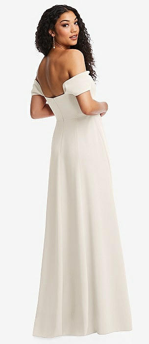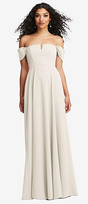 Off-the-Shoulder Pleated Cap Sleeve A-line Maxi Dress in ivory