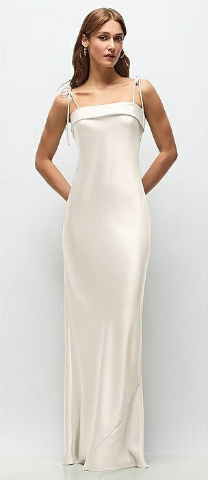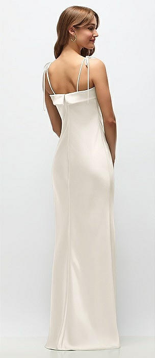 Cuff Neck Satin Bias Maxi Dress with Self-Tie Spaghetti Straps in ivory