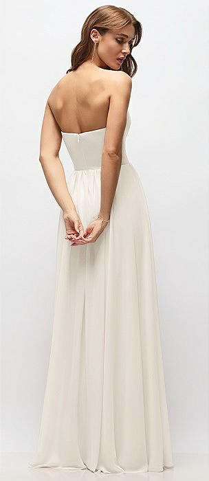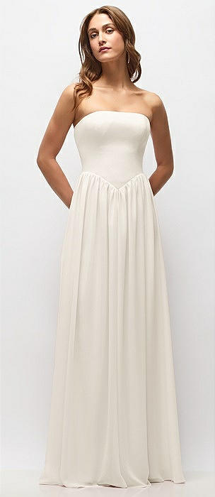 Strapless Basque Drop Waist Chiffon Maxi Dress with Shirred Skirt in ivory