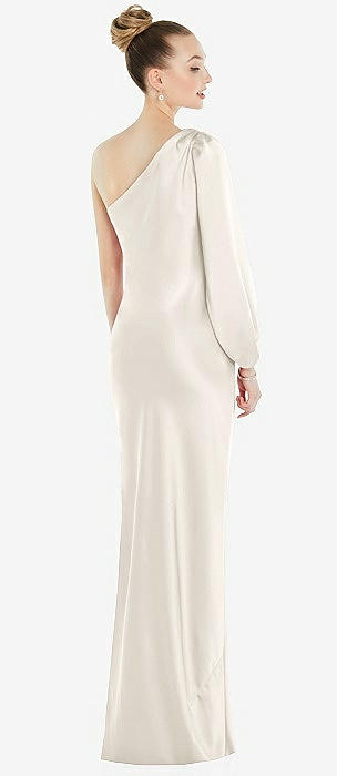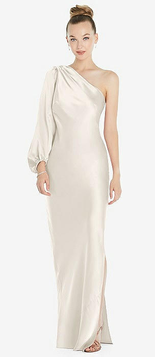 One-Shoulder Puff Sleeve Maxi Bias Dress with Side Slit in ivory