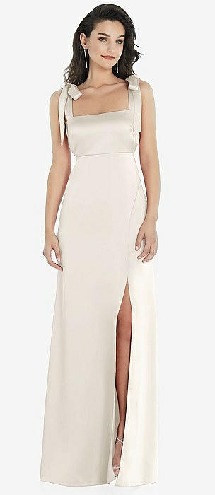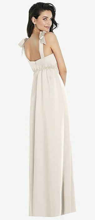 Flat Tie-Shoulder Empire Waist Maxi Dress with Front Slit in ivory