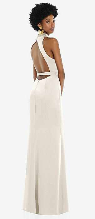Stand Collar Halter Maxi Dress with Criss Cross Open-Back in ivory