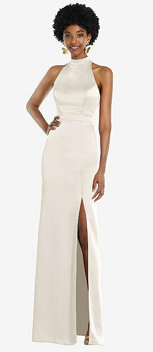 Scarf Tie High-Neck Halter Maxi Slip Dress in ivory