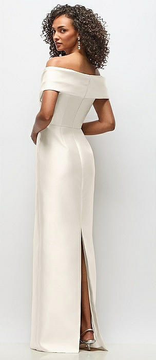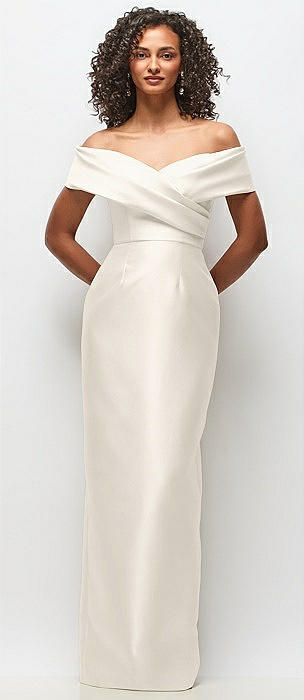 Off-the-Shoulder Crepe Column Maxi Dress with Bow-Pinch Detail in ivory
