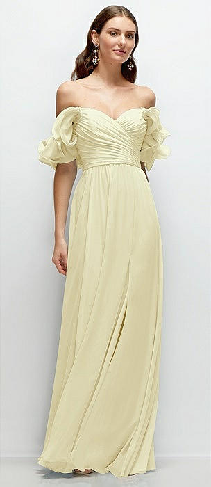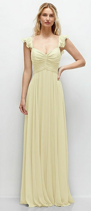 Convertible Ruffle Strap Chiffon Maxi Dress with Full Circle Skirt in butter yellow