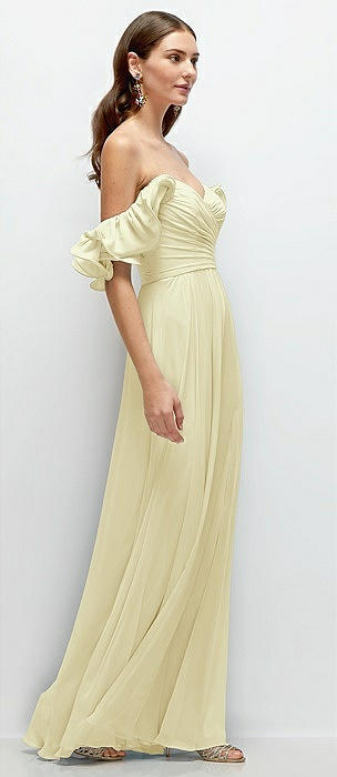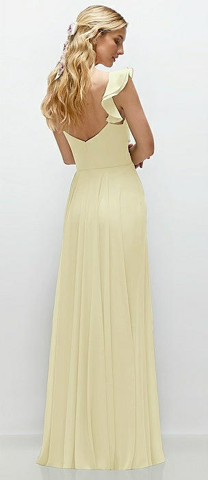Ruffle Strap Chiffon Bustier Maxi Dress with Ruffle Hem A-Line Skirt in butter yellow